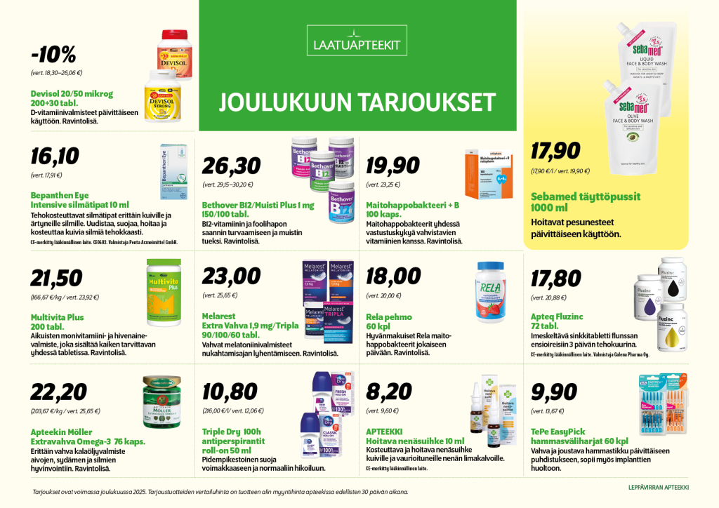 Apteekkimme ammattilaiset osaavat auttaa. Itsehoitotuotetta valitessasi voit aina kysyä neuvoa. Kerromme miten lääke vaikuttaa ja miten sitä tulee käyttää. Tieto on turvallisen lääkehoidon edellytys. Sijaitsemme keskeisellä paikalla ja tarjoamme laajan valikoiman terveyden ja kauneuden tuotteita sekä asiantuntevaa neuvontaa kaikissa lääkehoitoon ja hyvinvointiin liittyvissä kysymyksissä.